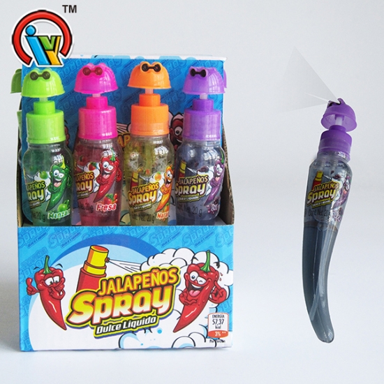 Top quality Chili sour sweets spray candy/liquid candy with sweet and sour taste. This product has apple flavor,strawberry flavor,orange flavor, grape flavor and other flavor for your choice.