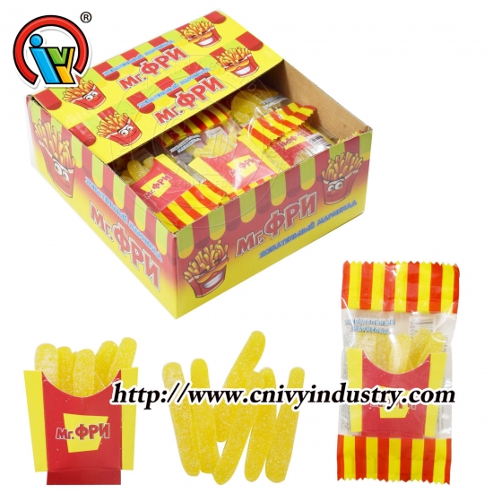 French fries shape jelly gummy candy. One carton has 12 boxes , one box has 30 pcs.