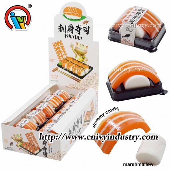 Gummy candy sushi with soft marshmallow candy